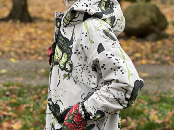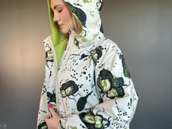 This eye-catching, practical accessory is ideal for Estonia’s variable weather, making it a must-have year-round, either in hand or tucked in your pocket! The fabric is cleverly sourced from leftover material from oversized jackets.