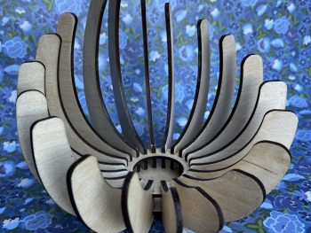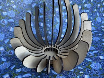 Made of eight layers of 3 mm birch plywood, stained and varnished in layers. Has a screw hole for hanging on the wall. Circumference 37 cm.