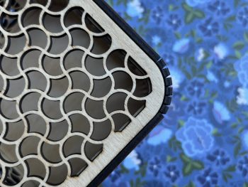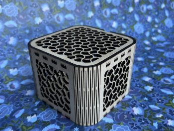 Valmistatud 3mm kasevineerist, mõõdud 13x13x7,8cm. Väljast viimistletud poolmati lakiga.